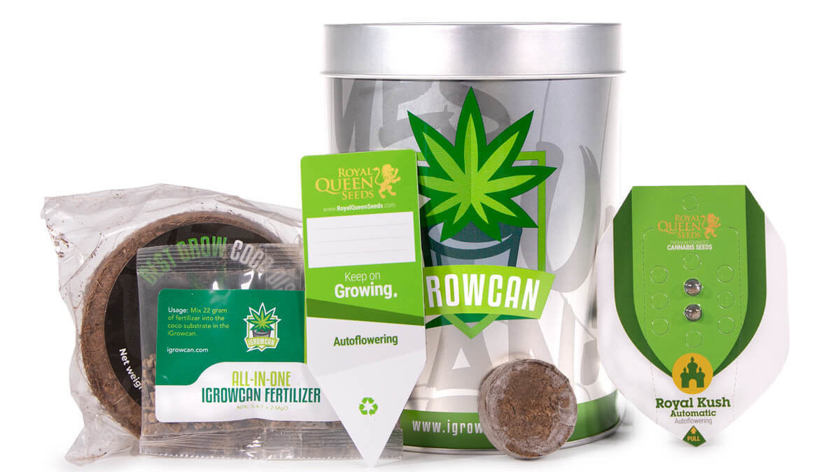 Met de iGrowCan is het kweken van wiet gemakkelijker en discreter dan ooit. Je hoeft niet eens potten of aarde in de winkel te kopen! Kweek snelle autoflowers die maximaal 60cm hoog worden en oogst ze in slechts tien weken tijd. Elk blik bevat twee zaden, een kiemplug en alle benodigde kweekmaterialen en voedingsstoffen. Volg de handleiding en kweek razendsnel een persoonlijke voorraad.