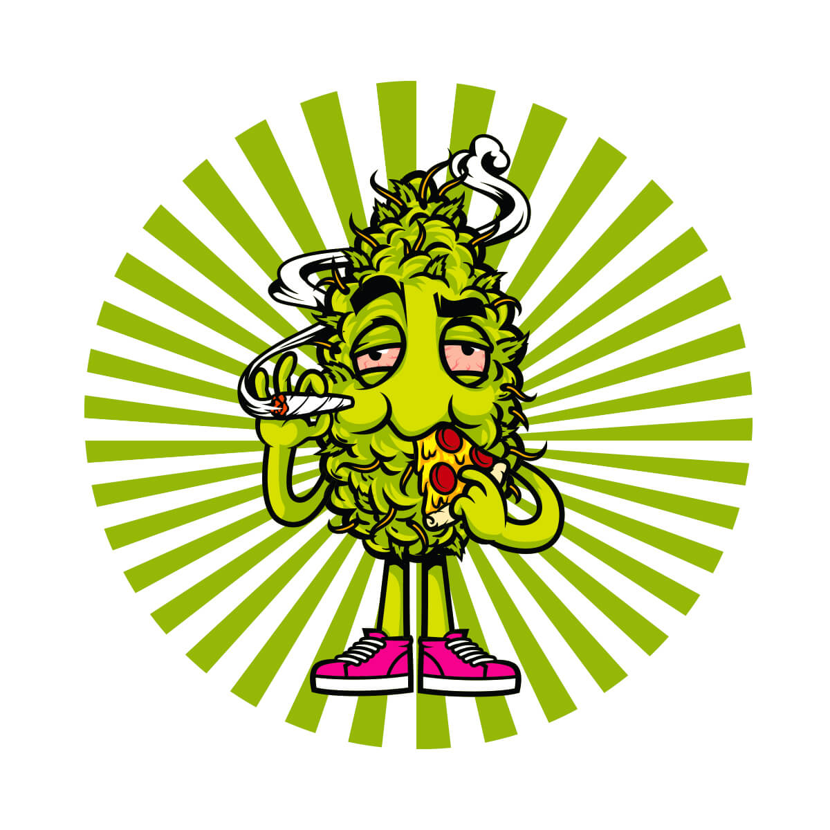 Creative and inspiring design with an animated herb with a herb roll while eating pizza