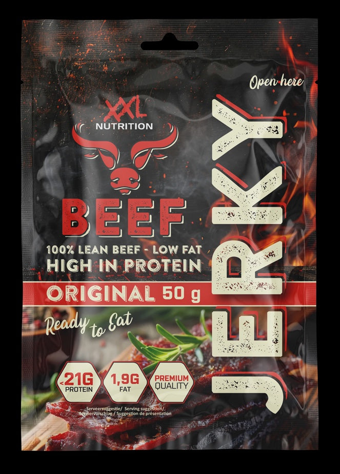 Ontdek de ultieme eiwitrijke snack: Beef Jerky! Met maar liefst 44% eiwitten een heerlijk tussendoortje na een zware work-out of voor onderweg!