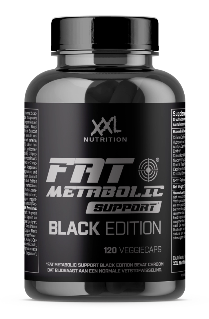 Ben je op zoek naar de meest krachtige burner op de markt? Dan is de Fat Metabolic Support Black Edition voor jou! De Fat Metabolic Support Black Edition bevat maar liefst 120 veggiecaps, die stuk voor stuk barsten van de meest krachtige ingrediënten. Net als de Fat Metabolic Support beschikt ook de black edition over een optimale verhouding van kwalitatief hoogwaardige ingrediënten, maar dan in een nóg krachtigere samenstelling. Denk hierbij aan cafeïne, hydroxyctric acid en EnXtra™. Ook de Fat Metabolic Support Black Edition van XXL Nutrition is samengesteld door professionals, zodat je zeker weet dat je enkel ingrediënten van de meest hoogwaardige kwaliteit gebruikt.