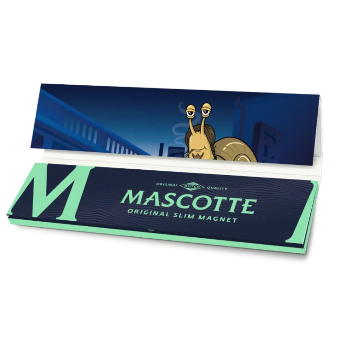 The design of the packaging may be completely new and unique, the papers inside are the regular high quality that characterizes Mascotte. For the Slowflu by Kevin this means an all-in-one Combi Pack with magnetic closure, when open you have a handy holder top rep you’re joint where ever you are, 34 self-extinguishing, slow burning pure white Original Slim Size papers. Of course with a Top Notch x Mascotte bodyguard and a 6-to-go- warning paper. 34 Mascotte Original Tips of smooth paper complete this limited edition.
