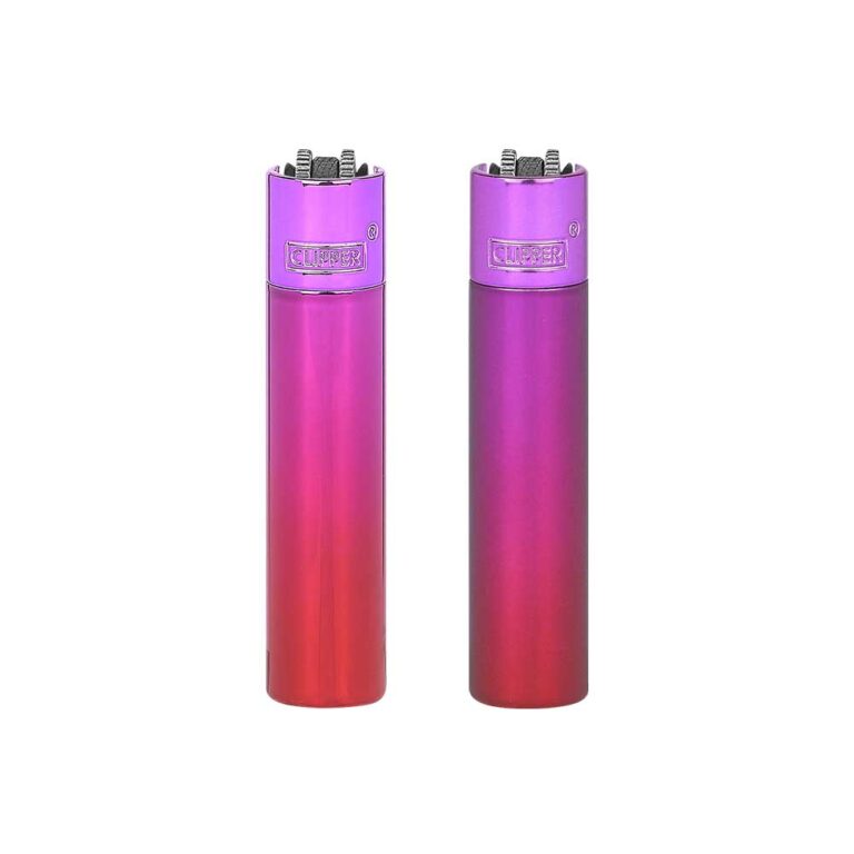De klassieke metalen Clipper aansteker is nu verkrijgbaar in speciale editie met pink gradient afwerking. Deze versie heeft een regelbare vlam en beschikt over een vuursteenontsteking. De Clipper zit in een luxe clipper doosje en is afgewerkt met Clipper logo. De aansteker beschikt over een vuursteentje wat eruit kan.