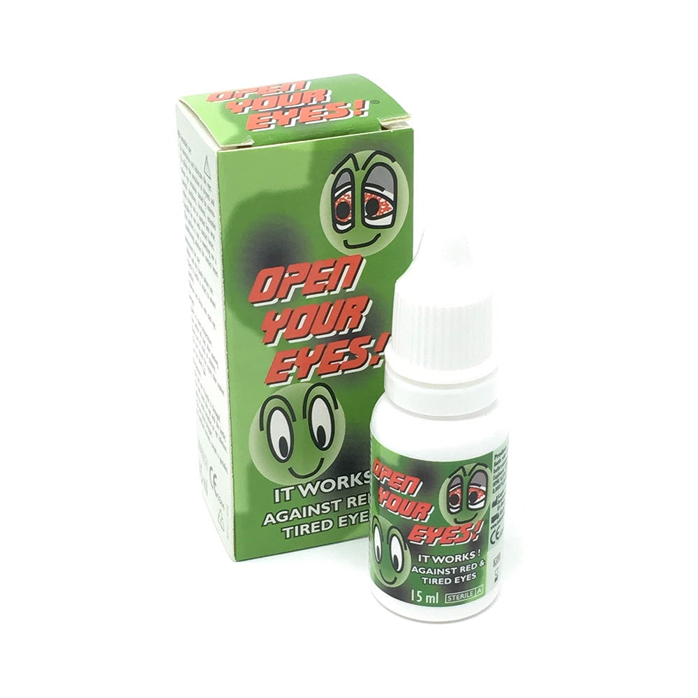 Open Your Eyes zijn oogdruppels tegen rode ogen. Iedereen heeft wel eens last van vermoeide bloeddoorlopen ogen na een avondje uit (roken, drinken) of als je net een slechte nacht hebt gehad. Open Your Eyes is de oplossing voor uw probleem. Een paar druppels in elk oog en het probleem verdwijnt in een mum van tijd. Al snel ziet de wereld er weer fris en helder uit. Open Your Eyes wordt aanbevolen voor alle computergame-freaks onder ons. De druppels worden geleverd in een aantrekkelijk en opvallend display, bovendien is Open Your Eyes samengesteld uit natuurlijke ingrediënten met exact dezelfde waarden als een traan.